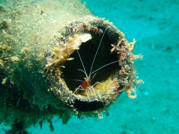 2カ月ほど前にはまだ超~~~シャイで、ダイバーの気配を察すると即、瓶の中に姿を隠していましたが、最近では随分と人馴れしてきた様子。