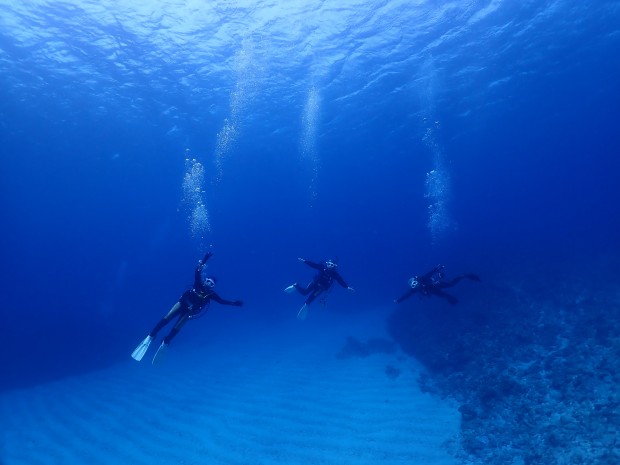 高校生ダイバーが誕生です! 今日までの3日間、Crewタケは、埼玉からやって来た体育科高校生の皆さんと、100名規模でのCカード取得講習に取り組んでいました。 最高気温27度! 11月末なのに、夏。 「暑い …
