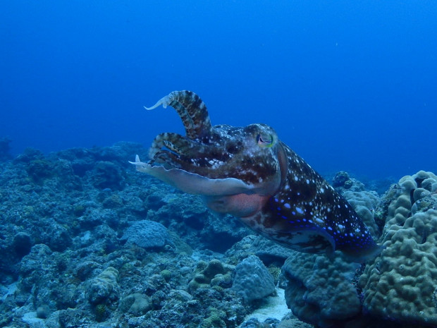 沖縄4月・旬の見ものコブシメが目の前で・チービシダイビング!台風2号接近には要注意