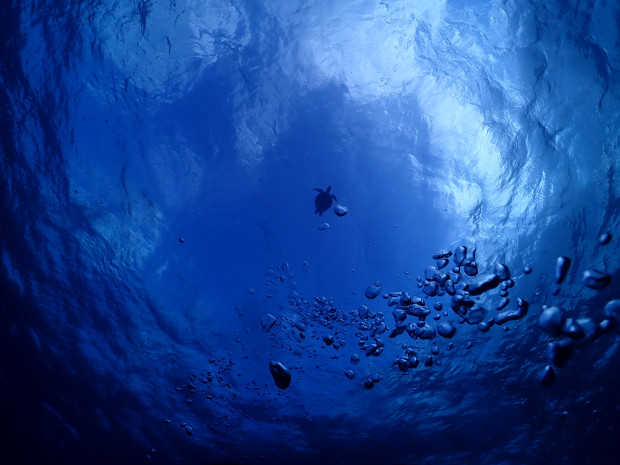 ダイバーが吐く泡と戯れるように♪ 子ガメが、水面近くをのんびりと。 今日は、こっちでカメ、そっちにもカメ、そしてあっちにも…カメカメ祭り。 サイズもいろいろ、過ごし方もいろいろ。各自、思い思いの時間をゆった …